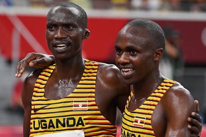 Joshua Cheptegei and Jacob Kiplimo after winning the Gold and bronze at the World Athletics Championships respectively