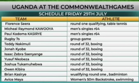 On the first day of competition for Uganda, below are the different athletes that will be in action;