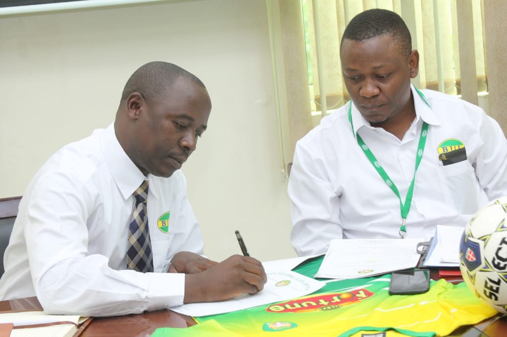 Ahmed Kongola signing the contract of appointment as the new BUL FC CEO | Courtesy photo