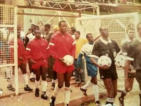 Chris M. Yolisigira leading out the two teams at the game played at Nakivubo Stadium in 1995. | Coutsey Photo