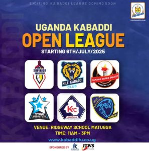 The inaugural Uganda Kabaddi Open League is officially set to kick off on 6th July 2026 at Ridgeway School, Matugga. This marks a significant milestone for the sport of Kabaddi in Uganda, reflecting its growing popularity and structured development across the country.
