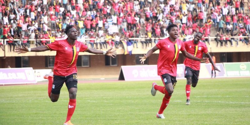 Emmanuel okwi celebrates after scoring for the Cranes against Malawi during their AFCON qualifier at Namboole | FUFA Media