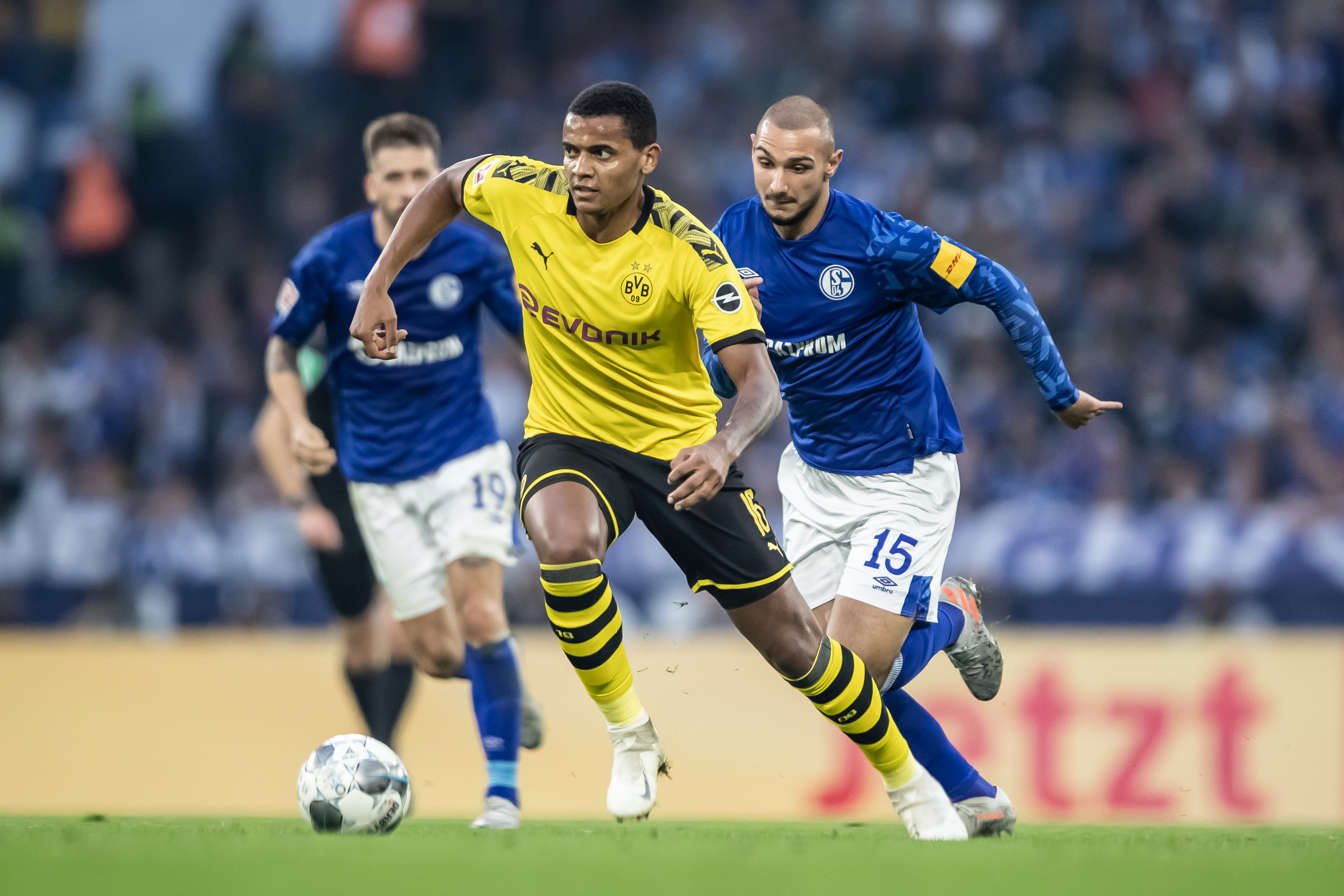 Manuel Akanji of Borussia Dortmund in action during the Bundesliga match between FC Schalke 04 and Borussia Dortmund at Veltins-Arena on October 26, 2019 in Gelsenkirchen, Germany. (Photo by Christian Kaspar-Bartke/Bundesliga/Bundesliga Collection via Getty Images)