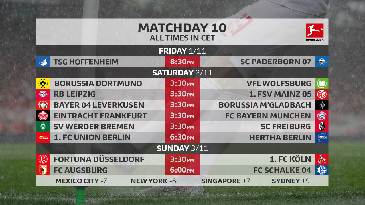 A first-ever all-Berlin derby in the Bundesliga takes center stage on Matchday 10, while Borussia Mönchengladbach will try to maintain their place at the top of the standings ahead of defending champions FC Bayern München.