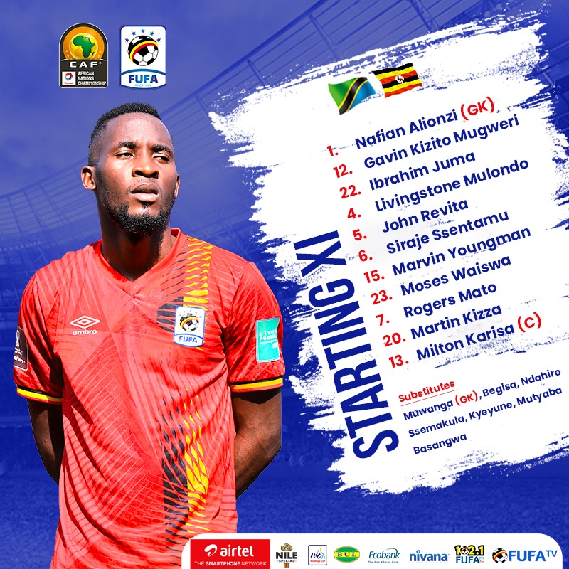 Muwagga, James Begisa, Travis Mutyaba, Kenneth Ssemakula, Saidi Kyeyune, Derrick Ndahiro and Richard Basangwa are the substitutes.