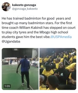 Kabindi reknown coach for both Mbogo High and Uganda Badminton National team, managed to take part in the Veterans category.