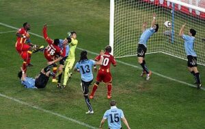 This reminded the Ghana fans when Uruguay’s Luis Suarez famously clawed the ball off the line in extra time at the 2010 World Cup to stop Ghana from scoring a last-gasp winner.