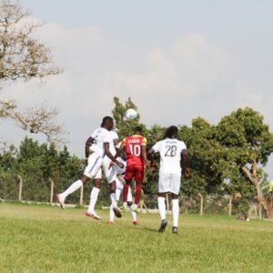 Action in the game between Ndejje University and Jinja North United at Bombo.