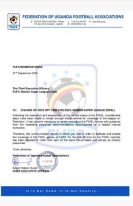 On Wednesday 21st September, FUFA put up a letter to change the general kick-off times of the FUFA Women Super League from 4pm in the evening to 10 am in the morning.