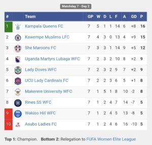 This result meant that the Queens returned top of the log with 16 points, one ahead of Kawempe Muslim who earlier drew goalless with bottom side Asubo Ladies at Kampala Quality school grounds.