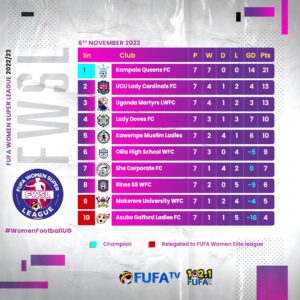 Another week in the FUFA Women Super League is wrapped up as Kawempe Muslim hold She Coporates to their fourth draw of the 2022/23 season, Olila, UCU, Rines SS all win just like Kampala Queens who maintain their 100 percent record of the campaign.