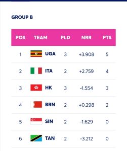 On Monday 11th November 2024, Cricket Cranes just like all the other teams will have a break and games will return on Tuesday 12th November 2024 with Italy taking on Bahrain in Lugogo and Tanzania facing Hong Kong, China in Entebbe.