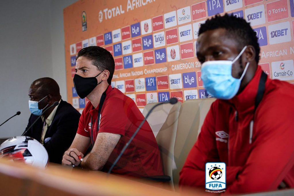 McKinstry with skipper Halid Lwaliwa at the Pre-match presser | FUFA Media