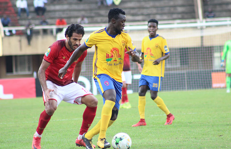 Saddam Juma in action against Tunisia’s Al Ahly at Namboole in the CAF Champions League | Courtesy photo