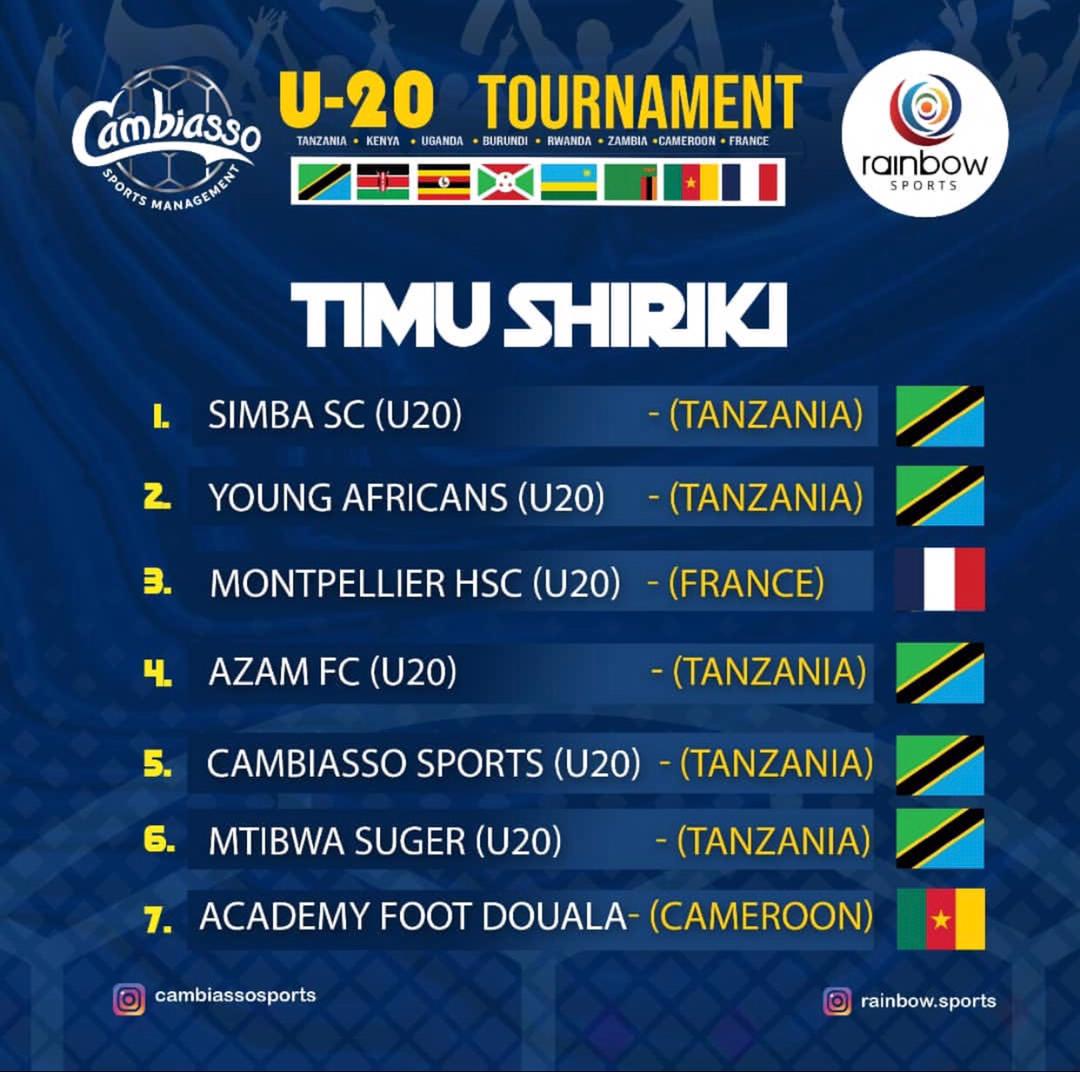 The other teams include Simba (Tanzania), Young African ( Tanzania), Montpellier HSC (France), Azam FC ( Tanzania), Cambiasso Sports, Mtibwa Sugar (Tanzania), Academy Foot Douala ( Cameroon), Coastal Union (Tanzania), Aigle Noir ( Burundi), Janza Soccer School ( Zambia), Zanzibar Combine ( Zanzibar), Kiyovu Sport (Rwanda) and Taifa Academy (Kenya)