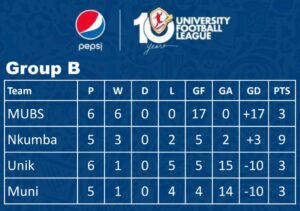 Other teams that have qualified for this season’s Pepsi University Football League knockout stage are Uganda Christian University(Group A), Makerere University Business School(Group B) , Nkumba University(Group B) and Uganda Martyrs University (Group E).