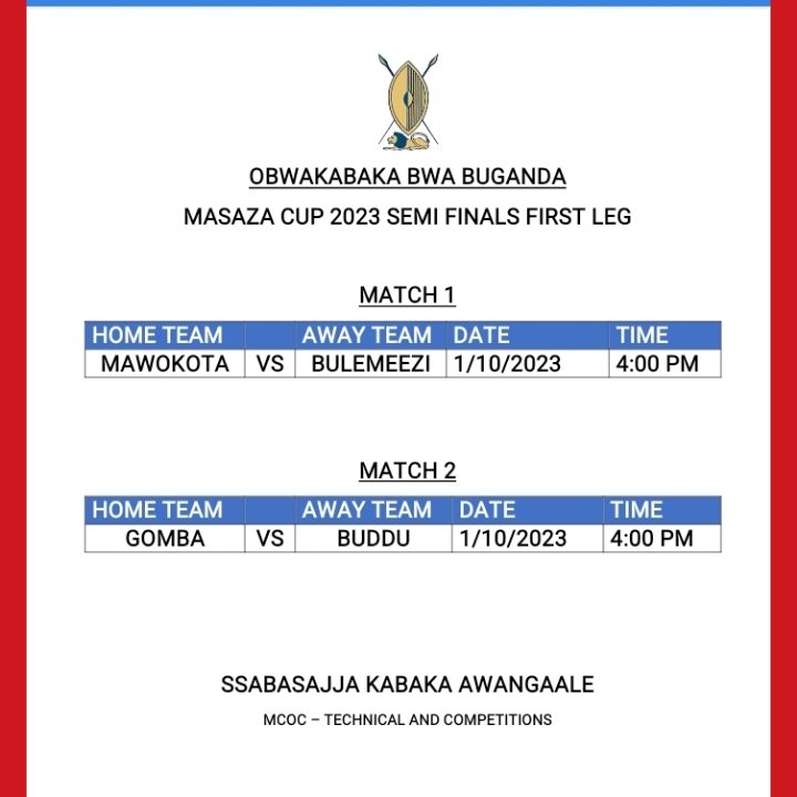 In the other quarterfinal games, a Kennth Kimera second half strike gave Gomba a 1-0 edge in the game at Mityana Ssaza Ground to seal their place in the semis with a 4-1 advantage on aggregate over Singo and will now face Buddu for a place in the final.