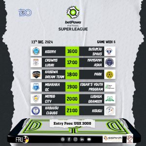 The game is set to be played on Friday 13th December 2024 at Old Kampala Futsal Arena starting 1700hrs with the game standing second on the menu of 6 games on the day.