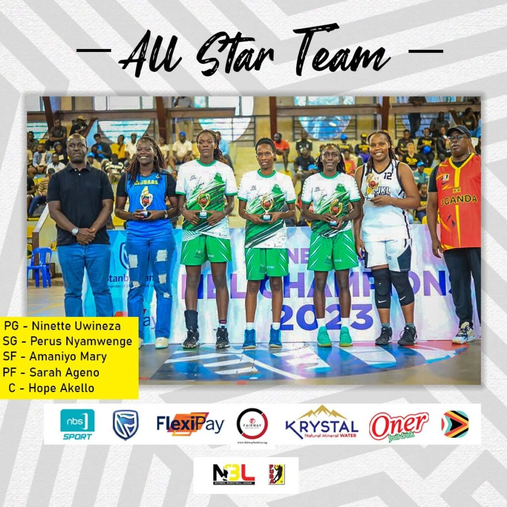 Akello was named MVP and also included in the NBL team of the campaign alongside KIU’s Ninette Uwineza, Perus Nyamwenge, Amaniyo Mary and Sarah Ageno of the JT Jaguars.