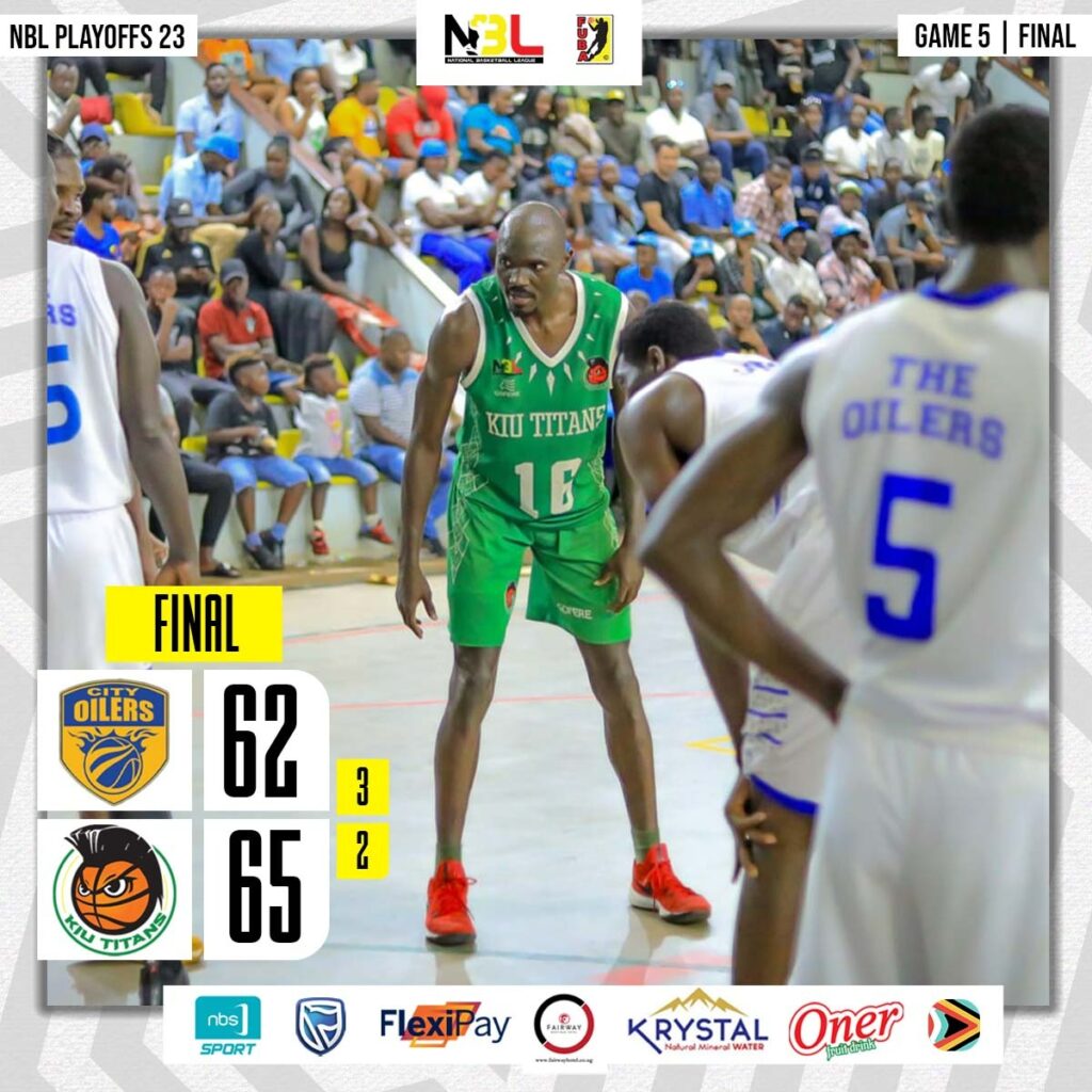 For the men play-off final, KIU Titans put City Oil’s title celebrations on hold after they won game FIVE 65-62 to force game SIX.