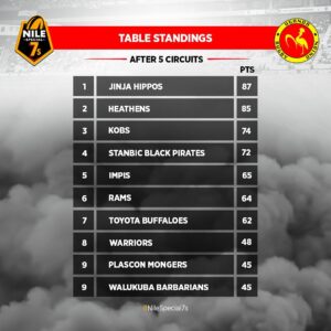 After five series, Jinja Hippos are now on top of the Log with 87 points to top the series standings and Heathens come in second followed by Kobs.