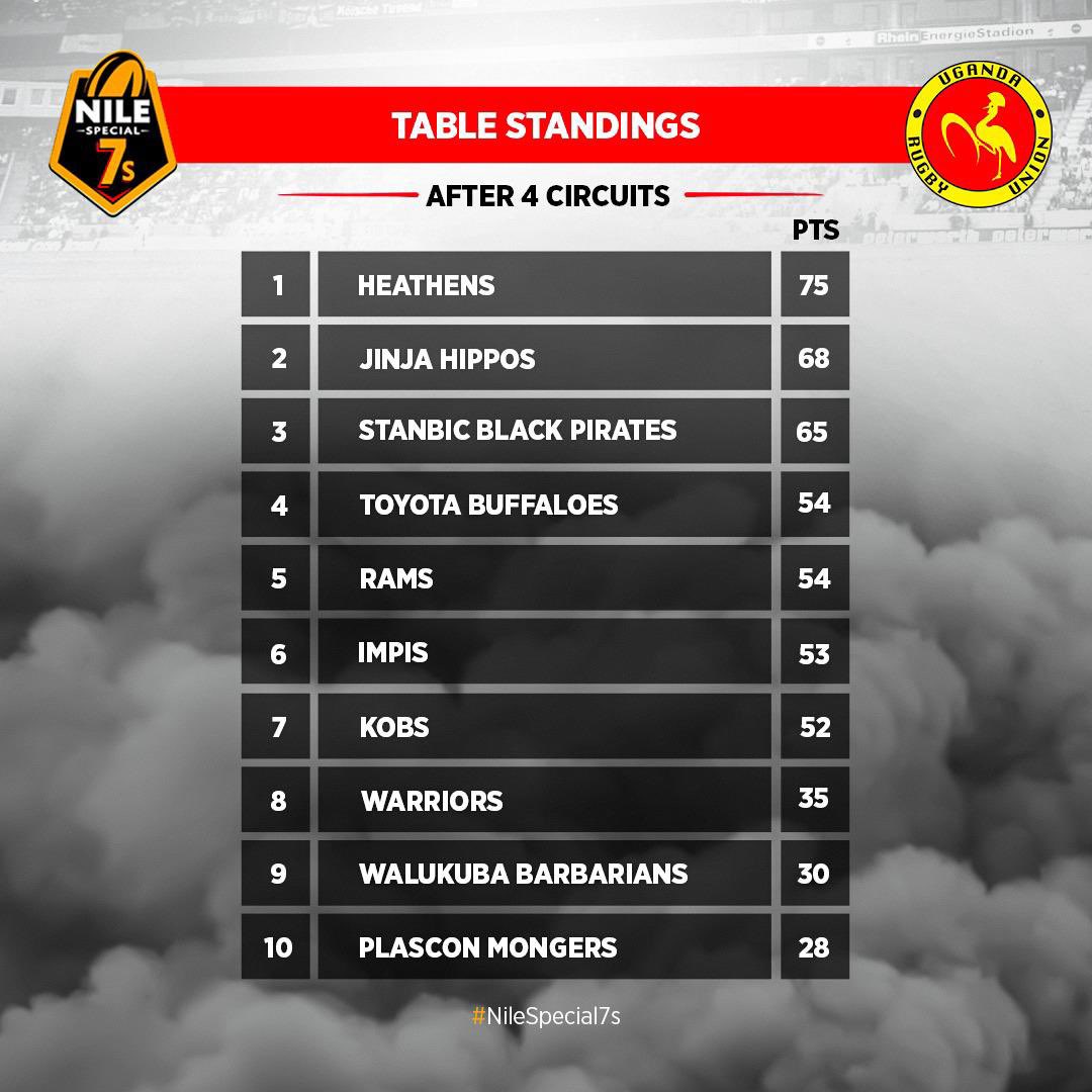 Current table standings of the ongoing Nile Special Rugby 7’s series.