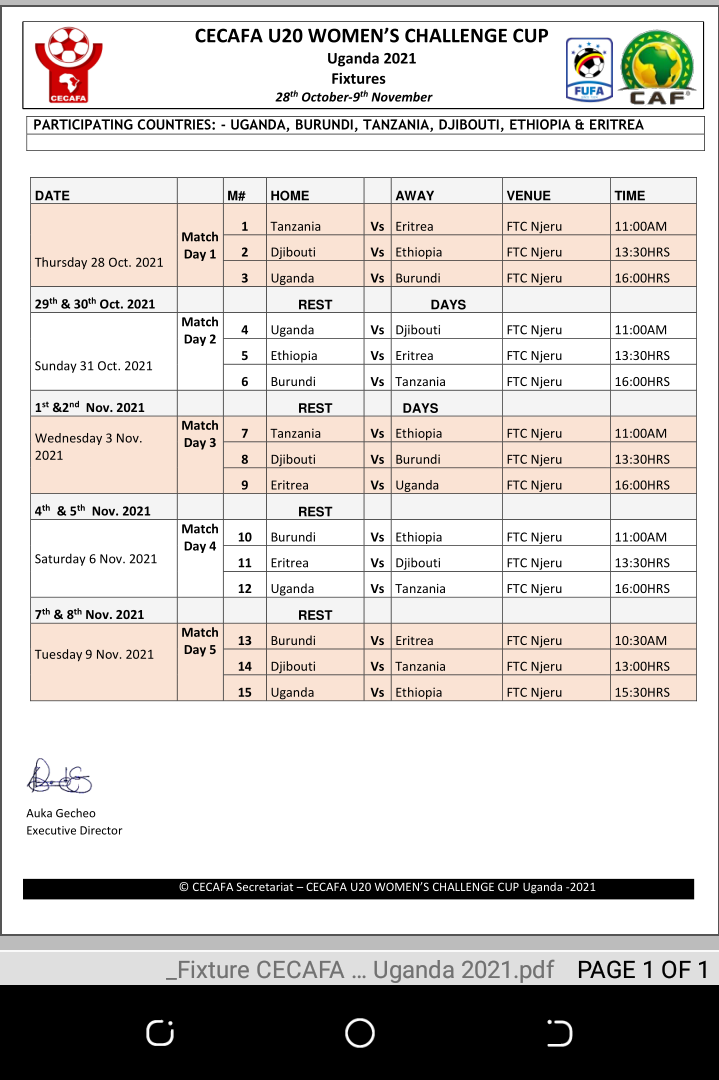 This was confirmed in the fixture released by CECAFA on Wednesday 20th October, 2021.