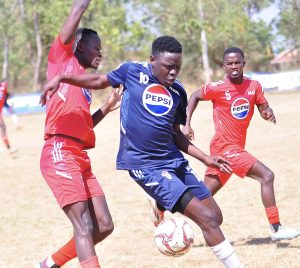 Omega Kisaale pushing his way in between Adea Nicholas and Mutekanga Frank.