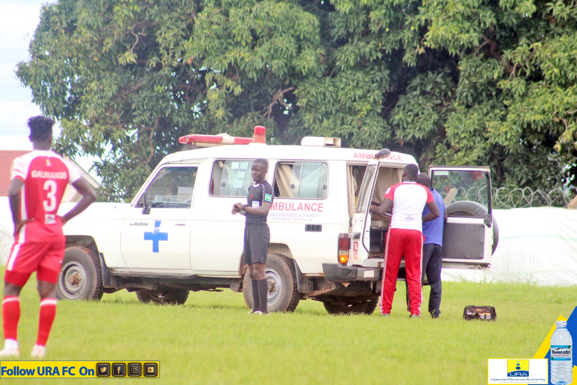 URA FC midfielder Julius Mutyaba was knocked unconscious following an aerial duel with an Express player and rushed to case clinic by ambulance but reports indicate he is.out of danger and already recuperating at St. Catherin hospital, Kampala.