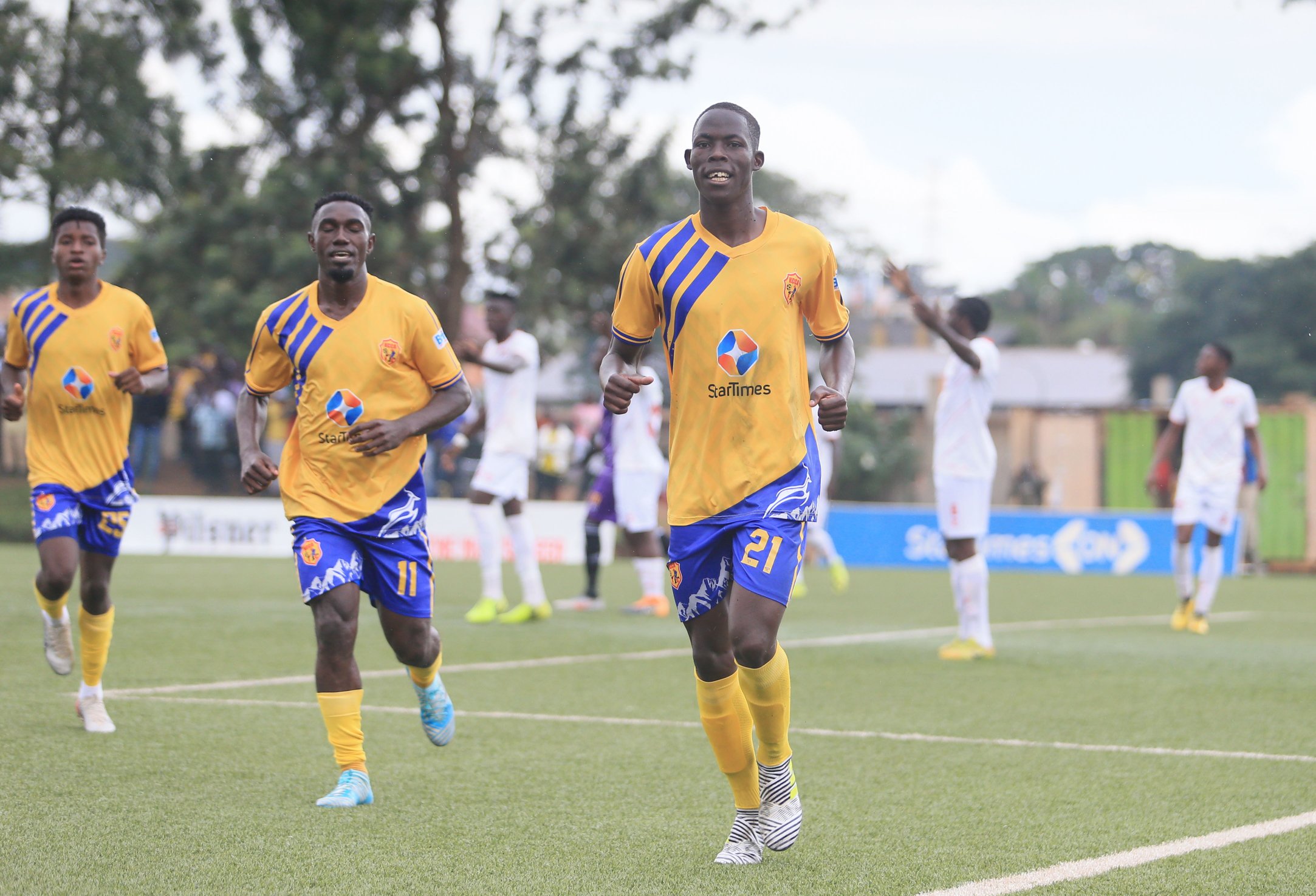 Sam Ssenyonjo celebrates after scoring against Kyetume in the 50th minute in their StarTimes Uganda Premier League matchat the StarTimes Uganda Premier League