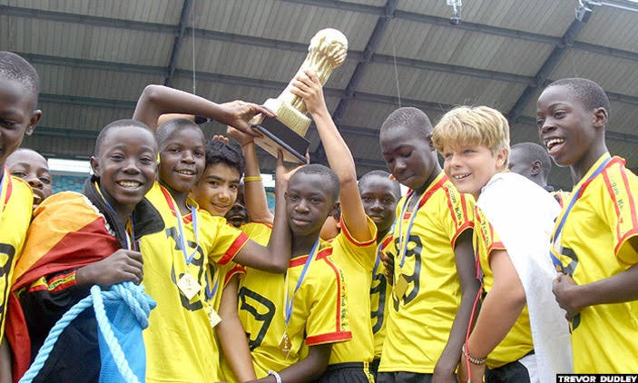 Sadam Juma (just below the trophy) after triumphing at the Gothia Cup in 2003 | Courtesy phot