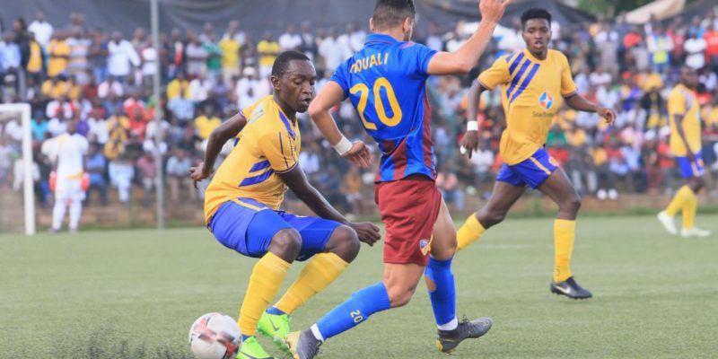 Samuel Kato vies for the ball with a Paradou AC player during their recent encounter at StarTimes Stadium, Lugogo last weekend – [courtesy of KCCA FC Media]