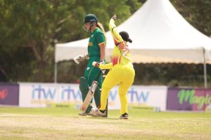 Miane Smit, with a quickfire 20 off 16 balls, fell victim to Janet Mbabazi’s bowling in the final over, bringing South Africa’s innings to a close at 122/4 after 20 overs.