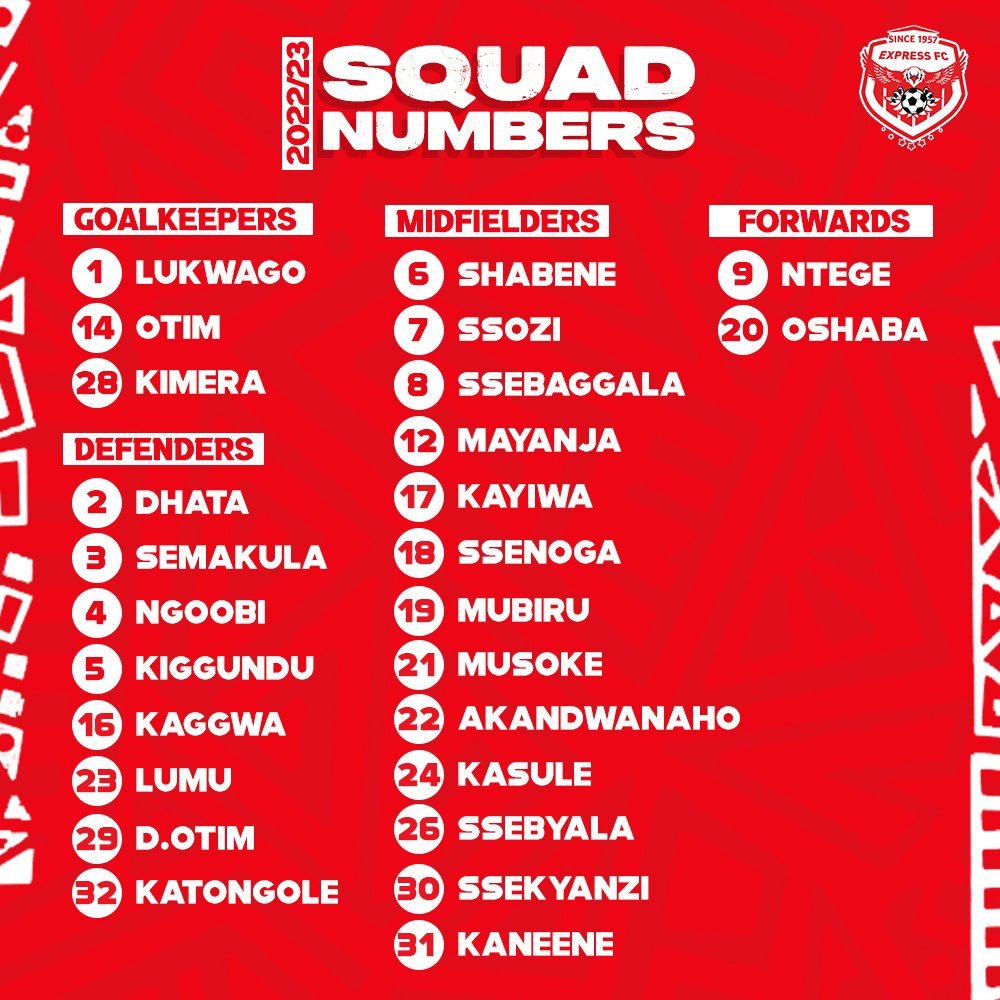 Seven-time Uganda Premier League champions Express FC have confirmed their squad shirt numbers ahead of the new 2022/23 season.