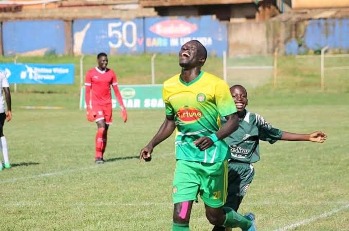 Vianney Ssekajugo celebrates after scoring against Proline FC in the first round of the StarTimes Uganda Premier League at Wakulukuku | Courtesy Photo