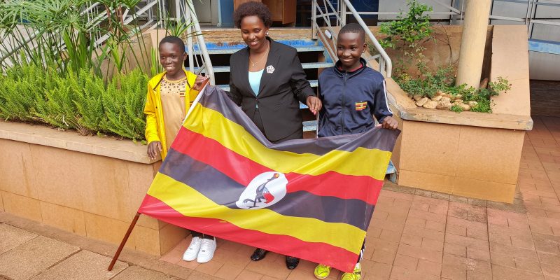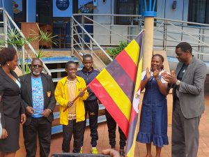Sir Joseph Sebatindira waving the Uganda Flag.