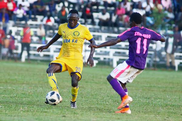 Gift Ali in action against Kyetume FC at the StarTimes Stadium, Lugogo
