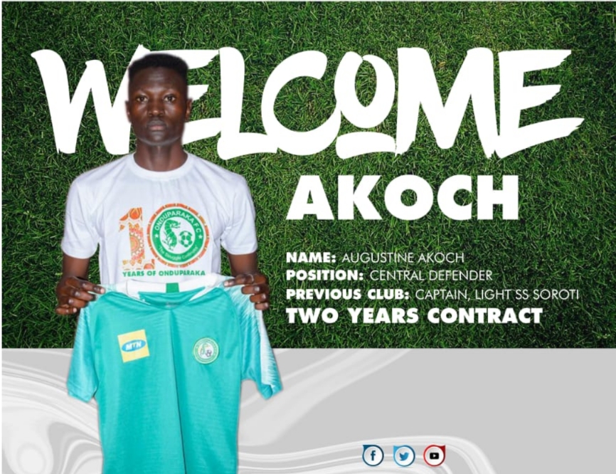 Onduparaka FC confirmed the signing of three new players ahead of the 2020/21 UPL season. The trio included Centre back Augustine Akoch (Light SS) and Midfielders, Jasper Okello and Nelson Opio (both from Saviors FC)