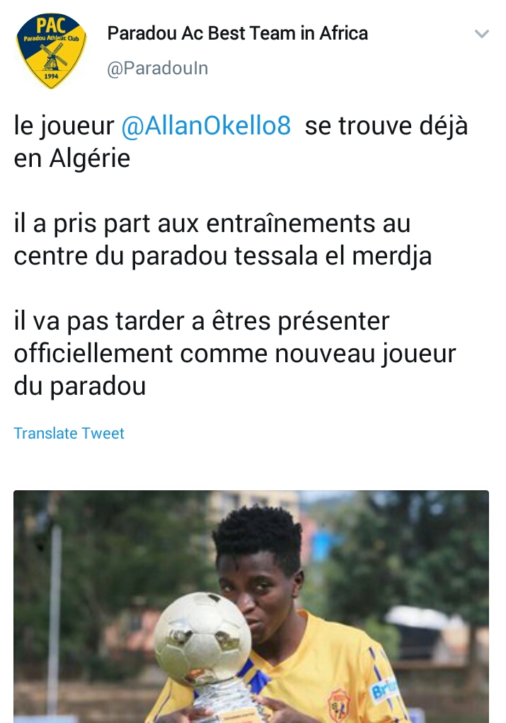 Allan Okello traveled to Algiers late last week in order to take part in several of Paradou’s training sessions at Tessala el Merdja training complex.