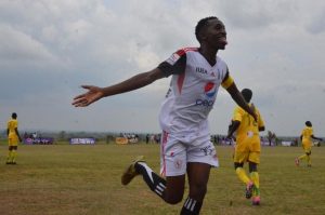 Daniel Erimu cerebrating one of his goals against Busitema