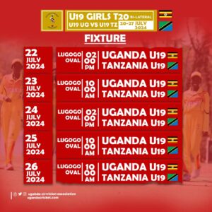 The Tanzania U19 women’s cricket team is set to arrive in Uganda for a bilateral series featuring five T20 matches from July 20th to 27th.