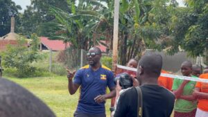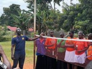 Coach William Kabindi taking both the students and teachers through the dynamics.