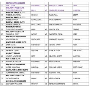 In the Light welterweight 63.5kgs, Bombers Captain Joshua Tukamuhebwa from East Coast will take on KCCA’s Raskara Paul as Nakawa BC’s Yusuf Nkobeza takes on Ojok Alfred in the middle 75Kgs Elite.