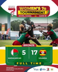 Uganda Lady Rugby Cranes finish third for the second time in two years to secure the women’s Rugby Africa 7s bronze medal in Accra, Ghana.