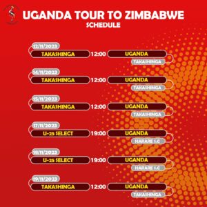 The Uganda tour to Zimbabwe takes a break tomorrow, with the games resuming on Tuesday, November 14, 2023.