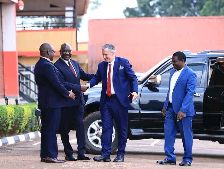 Nikola Kavazovic welcomed by Club President Lawrence Mulindwa at St. Mary’s Stadium, Kitende | Courtesy Photo